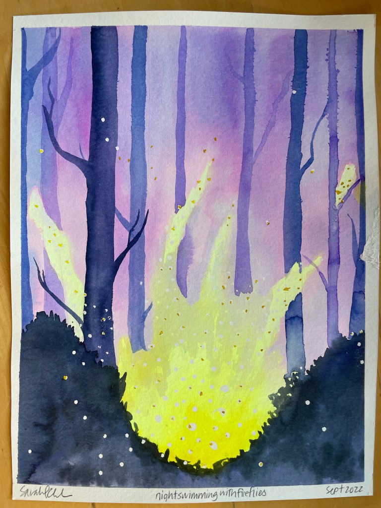 Thankfully, each bright August day the sun sets. And following the sunset is a hush. The evening breeze winds its way through the kitchen windows and the dust of the day clears. The lightning bugs begin to flash their bioluminescent stardust-brought-to-life-selves and Ruth and I set out for some nightswimming.
